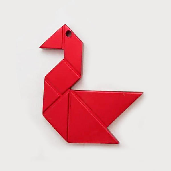 Inspired by childhood game, Tangram puzzle. We made it in 5 different animal shapes with playful colors. This style is in the shape of a swan.